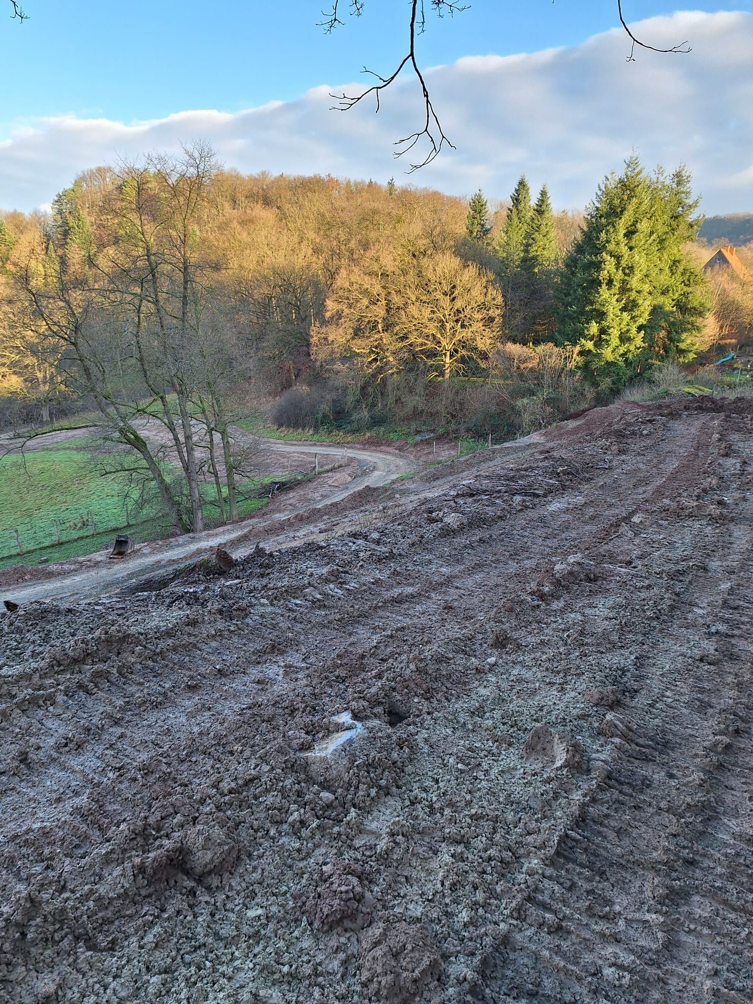 Der Wegebau im Bereich der Espolde vom Gehege der Mini-Schweine entlang der Espolde und hinauf in den oberen Bereich des Wildparks nimmt „Gestalt“ an. Das Tiefbauunternehmen Erdbau Hake GmbH aus Beverungen ist mit schwerem Gerät Raupenbagger, Walze und Kettenbagger angerückt. Dabei soll der neue Weg im ersten Schritt den unteren Bereich mit den oberen Bereich barrierearm verbinden. Die bisherige Treppen-Verbindung wird bleiben und kann weiterhin z.B. als „Fitnesstraining“ genutzt werden. In einem zweiten Schritt wird dann die Espolde mit Hilfe einer Brücke „erlebbar“ gestaltet. Die Arbeiten im Hangbereich und das Anlegen der Serpentinen verlief bisher gut im Zeitplan. Dicke Sandsteinquader sichern den Weg gegen Stein- und Erdrutsche ab. Allerdings liegen in der Wegebautrasse alle möglichen Leitungen, die da „eigentlich“ nicht verlaufen sollten. Dazu gehört eine 20 KV-Hauptstromleitung u.a. für Ertinghausen, die leider widererwartend gefunden und gekappt wurde. Die Leitung muss nun in diesen Teilbereich neu verlegen werden. Die Kosten werden vom Versorger getragen. Parallel zu den Wegebauarbeiten werden die abgängigen und alten Wasserleitungen vom Eigenbetrieb Stadtwerke in einem Erdbohrverfahren neu verlegt.